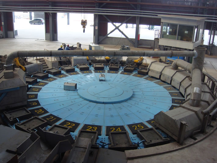 It is a storage device that alternately pours copper water into the casting ladles on both sides. The casting ladles are placed on an electronic scale. We collectively call it a quantitative casting device. The weight of the cast anode plate is controlled by it; during the entire casting process, the disc is in operation. During the alternation between and pause, when the disk is stationary, the quantitative casting equipment